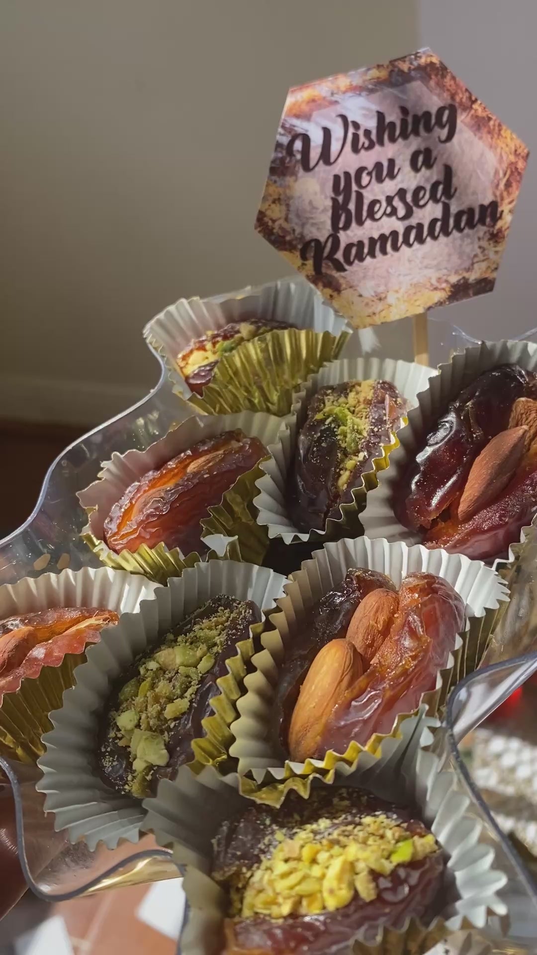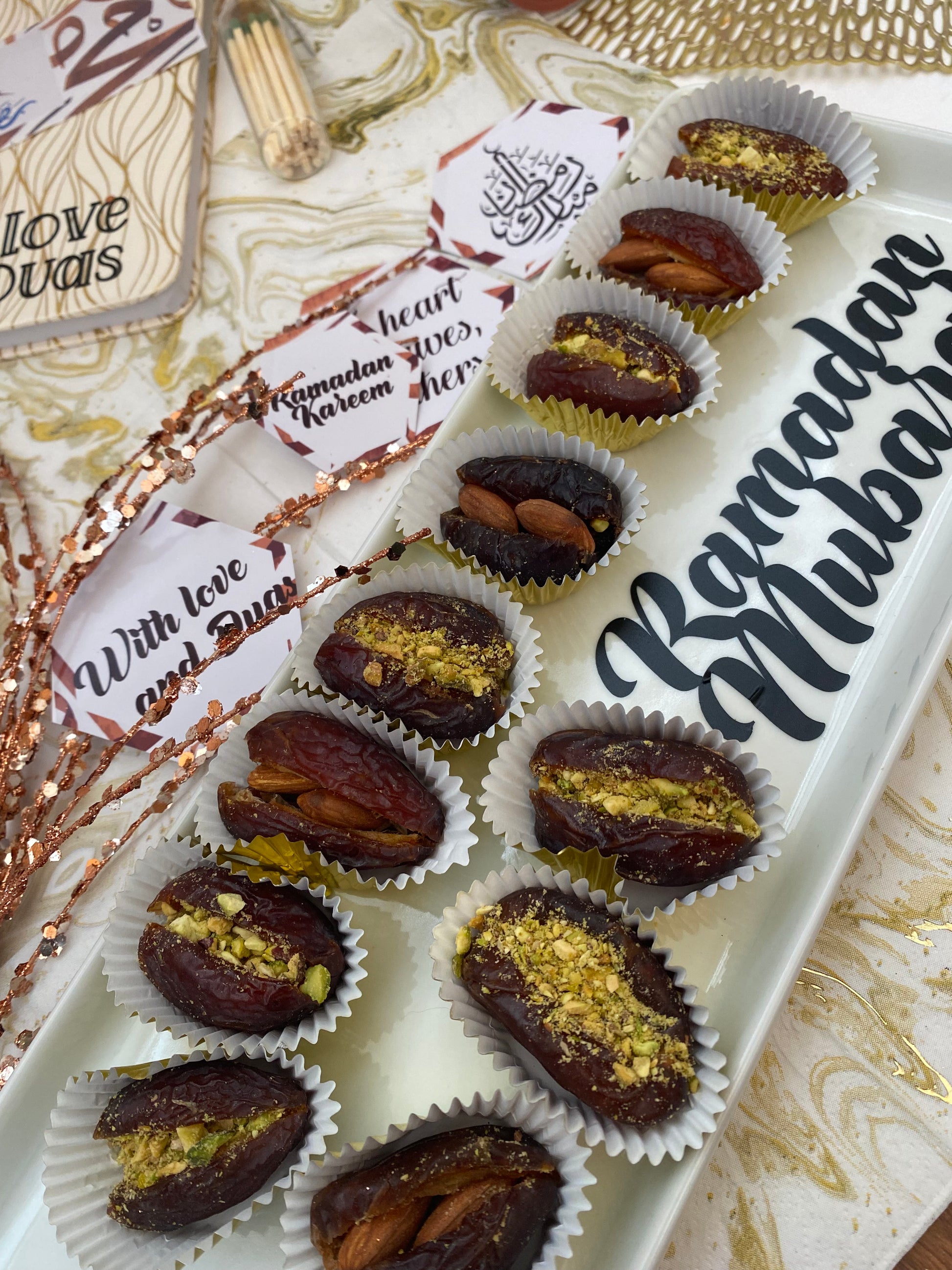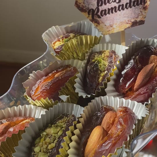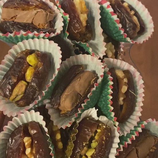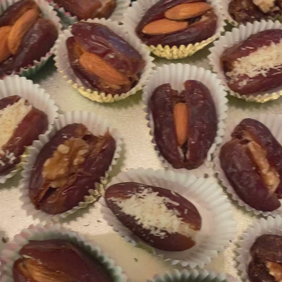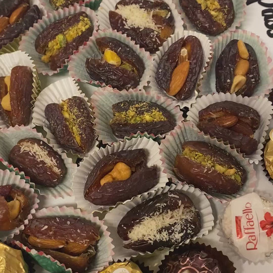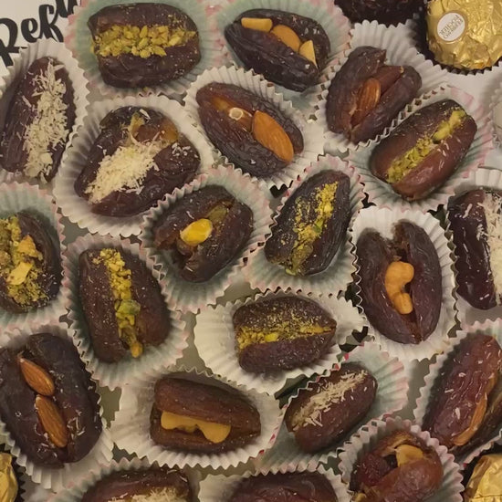 Dates are stuffed with an assortment of pistachios, cashews, almonds and on request chocolates.
